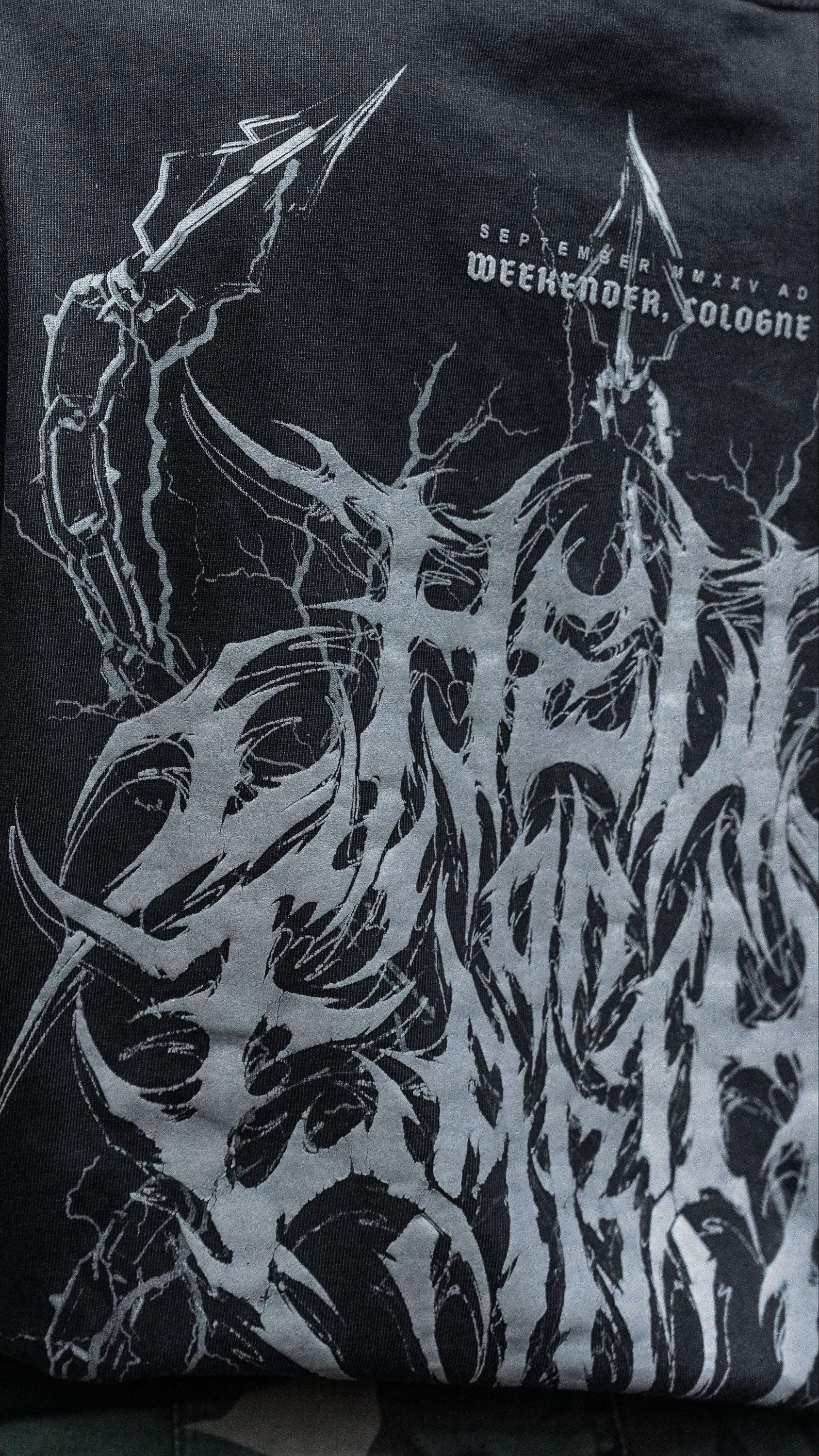 Backprint: Discharge background + multilayered key visual popping print