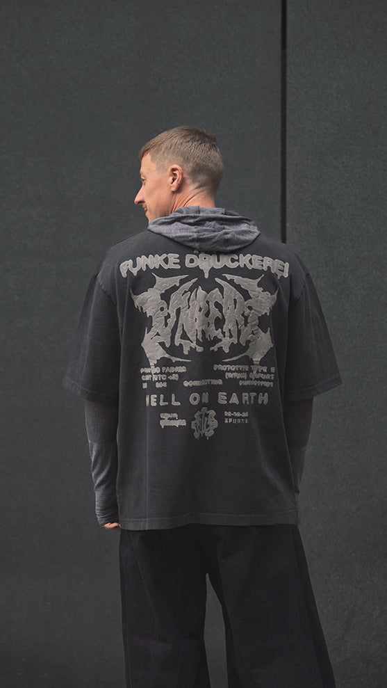 Front: Discharge background + Light Puff-Print parts