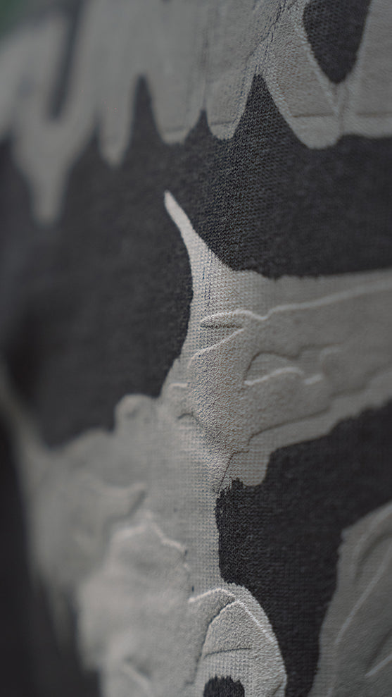 Backprint: Discharge background + Light Puff-Print parts